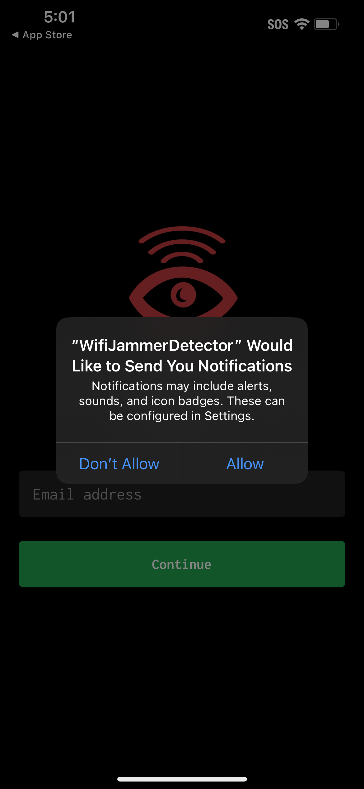 You must Allow Notification permissions to use the App, we will only send you notifications (and emails) for the following events: